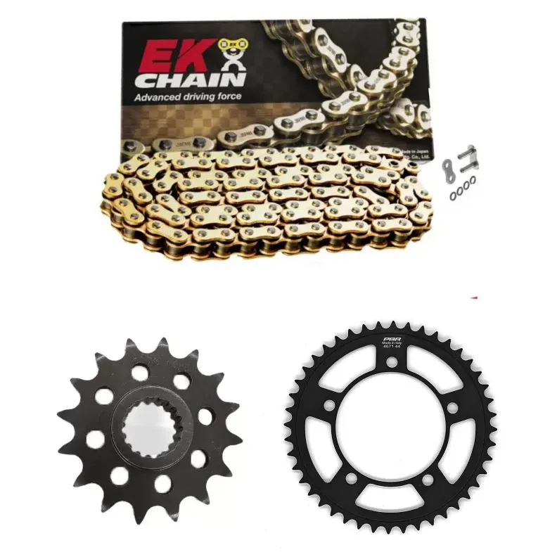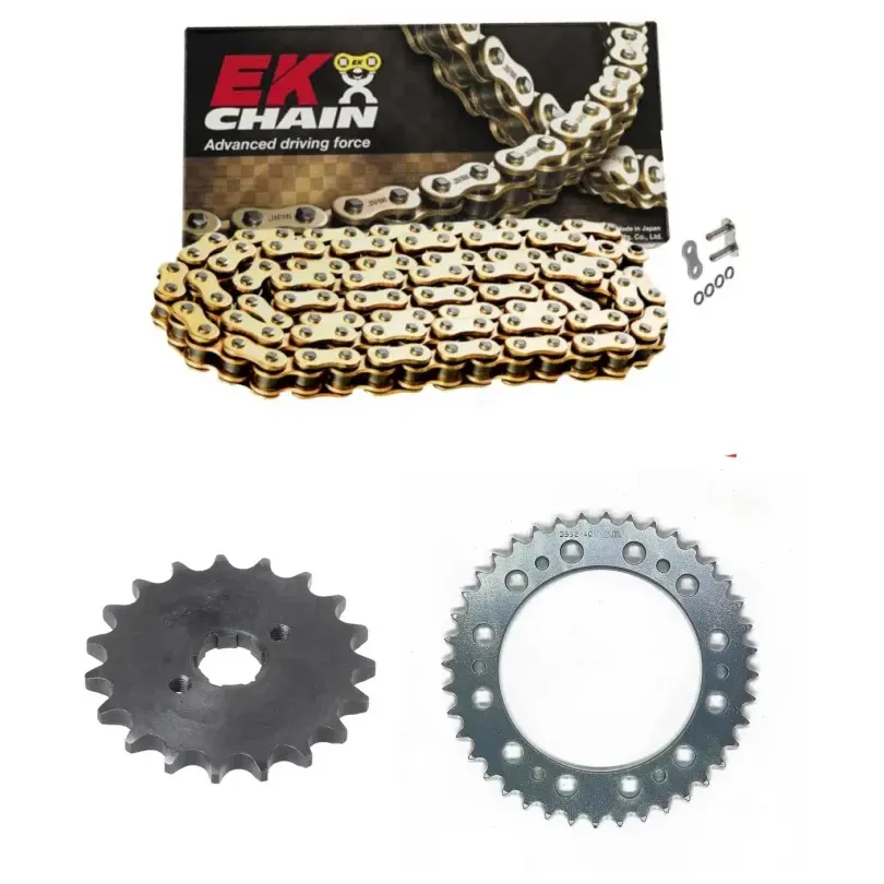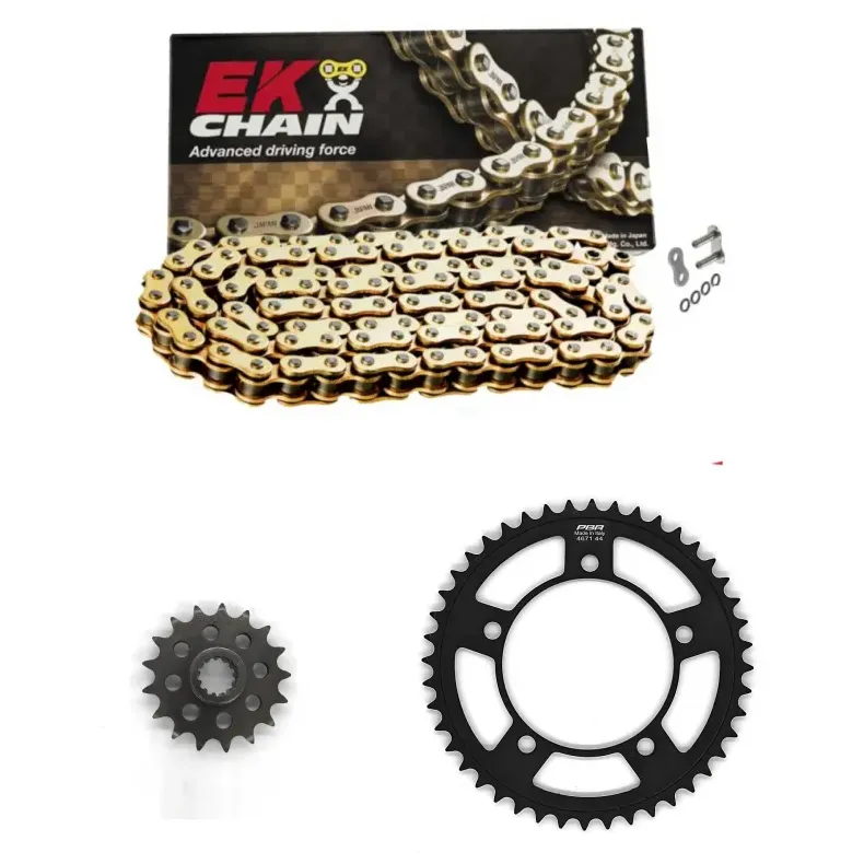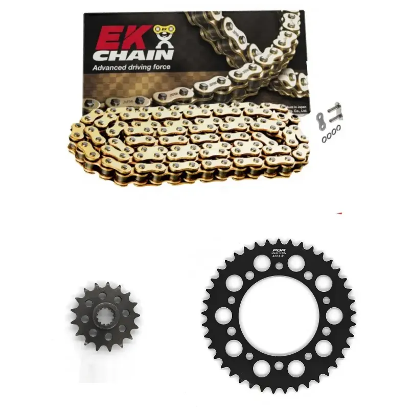 EK Chain es una reconocida marca japonesa especializada en la fabricación de cadenas de transmisión de alto rendimiento para motocicletas. Con más de 70 años de experiencia, EK Chain se ha consolidado como líder en la industria gracias a su enfoque en tecnología avanzada y durabilidad. Sus productos destacan por incorporar innovaciones como los eslabones con juntas Quadra-X Ring, que minimizan la fricción y prolongan la vida útil de la cadena, y el sistema de remache Zero Stretch para reducir el estiramiento inicial. EK ofrece una amplia gama de soluciones para motocicletas de calle, deportivas, off-road y competición, garantizando un rendimiento óptimo y un bajo mantenimiento, siendo una opción preferida por pilotos profesionales y motociclistas exigentes.
