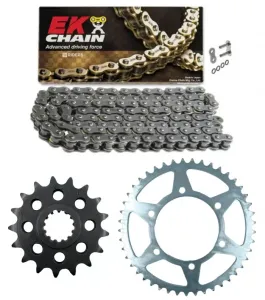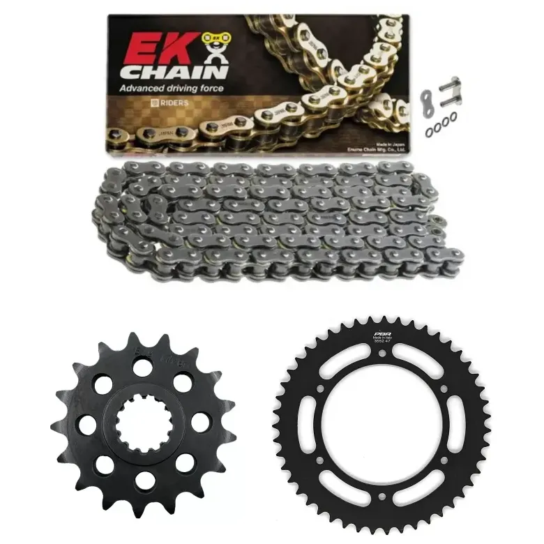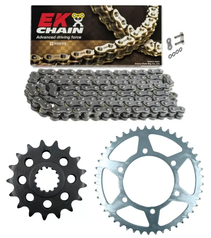 | Cadena: | CADENA JAPONESA EK 530 SRX2 - QX RING - REMACHE - ajustada a 118 eslabones (medidas originales de la moto) |