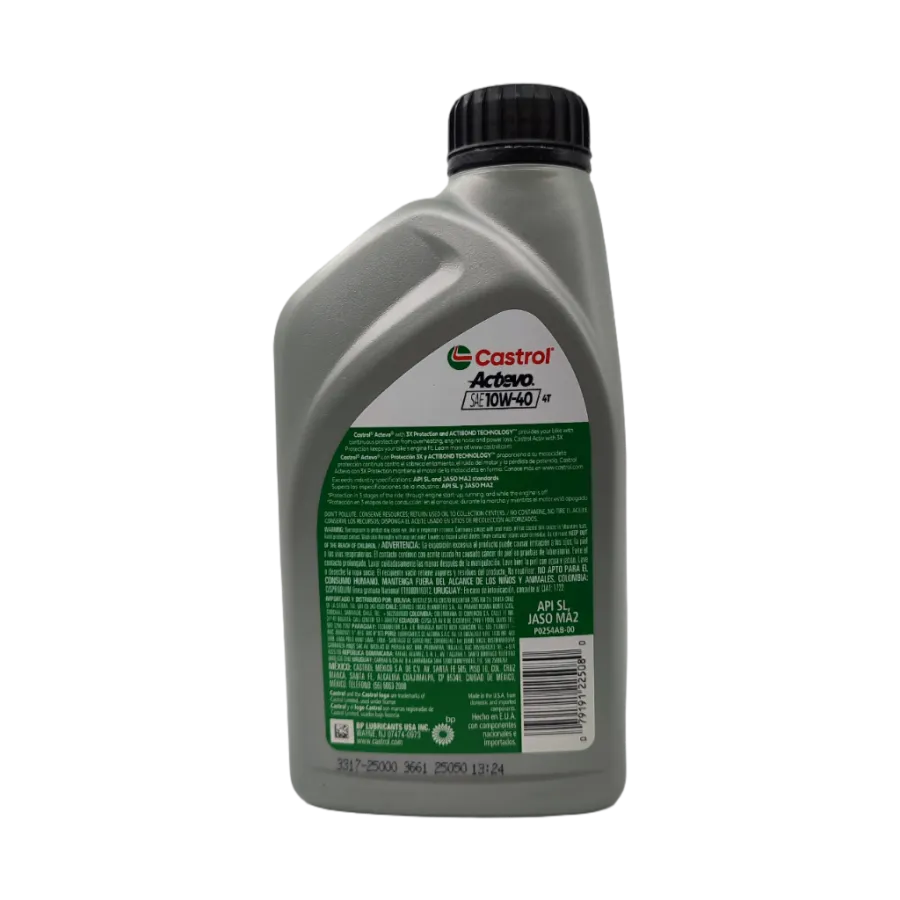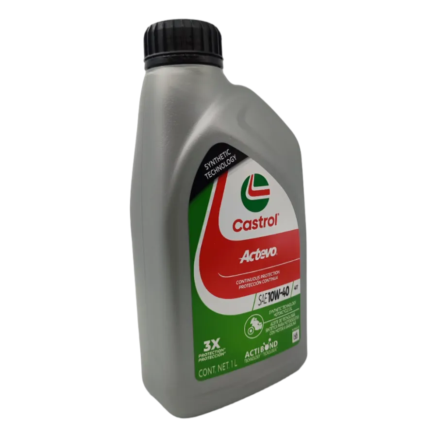 Castrol® Actevo® 4T 10W-40 con Tecnología TRIZONE™ es un aceite de alta calidad, formulada con base mineral, elaborado con Moléculas de Protección Activa las que se unen y protegen las secciones críticas de las motocicletas de cuatro tiempos para una protección activa y continua desde el inicio hasta el final de cada viaje.